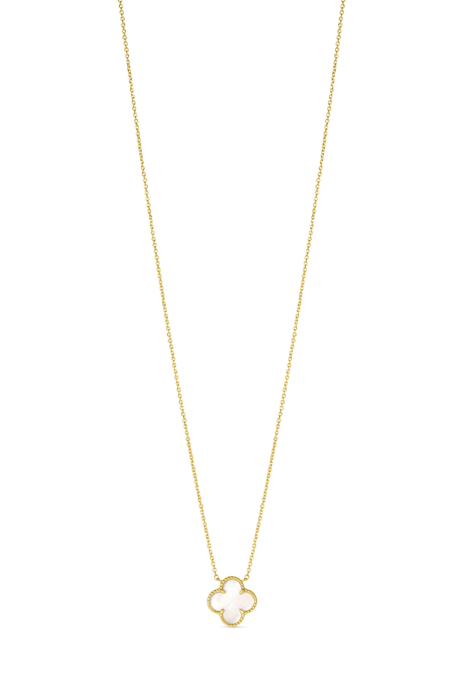 14K Yellow Gold Italian White Mother of Pearl Clover Necklace with 16"-18" extender