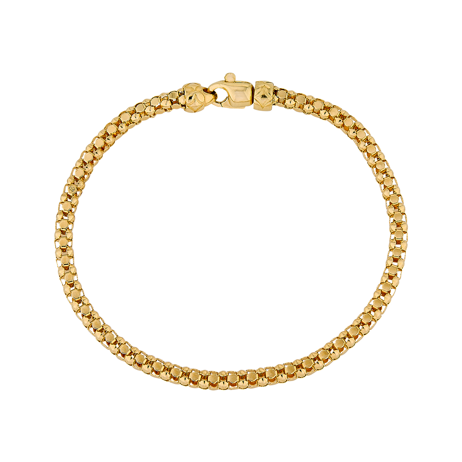 14K Yellow Gold Italian Woven Bracelet with Diamond Cutting and Clasp