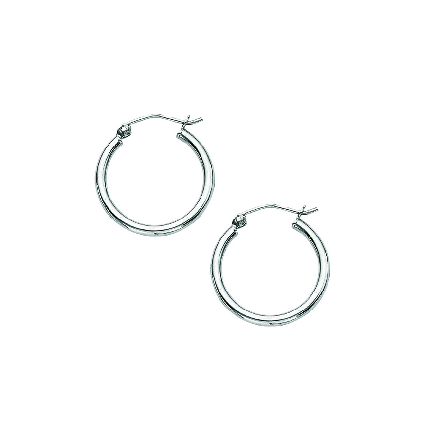 Sterling Silver Rhodium Plated 2X18mm Polished Hoops