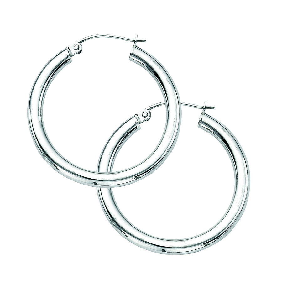 Sterling Silver Rhodium Plated 3X30mm Polished Hoops