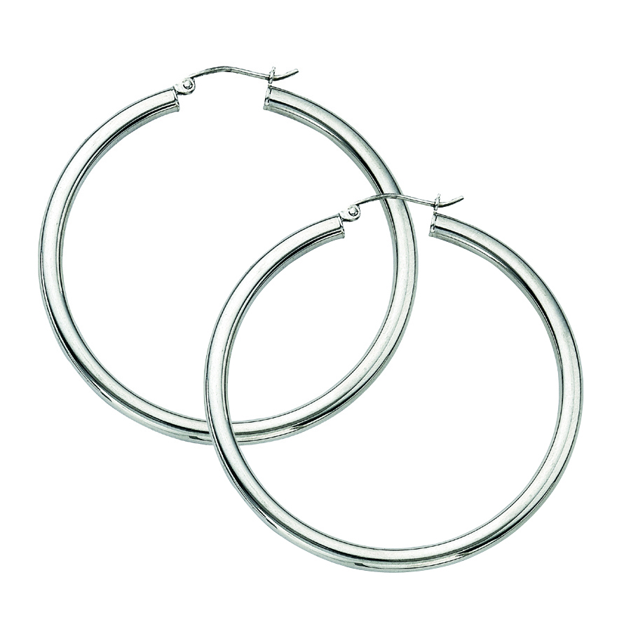 Sterling Silver Rhodium Plated 3X45mm Polished Hoops