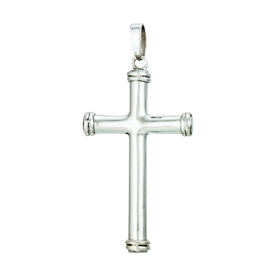 Sterling Silver Rhodium Plated Polished Cap Edge Cross