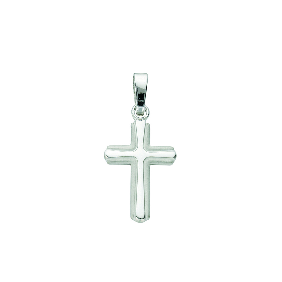 Sterling Silver Rhodium Plated Polished Satin Cross