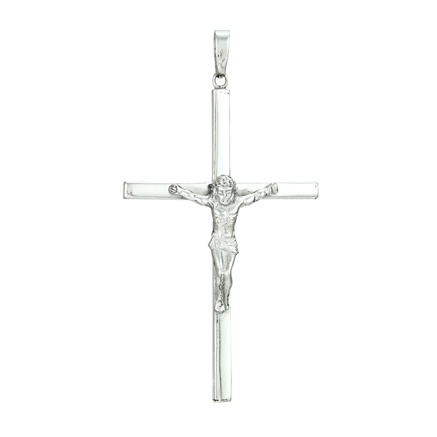 Sterling Silver Rhodium Plated Polished Square Tube Large Crucifix