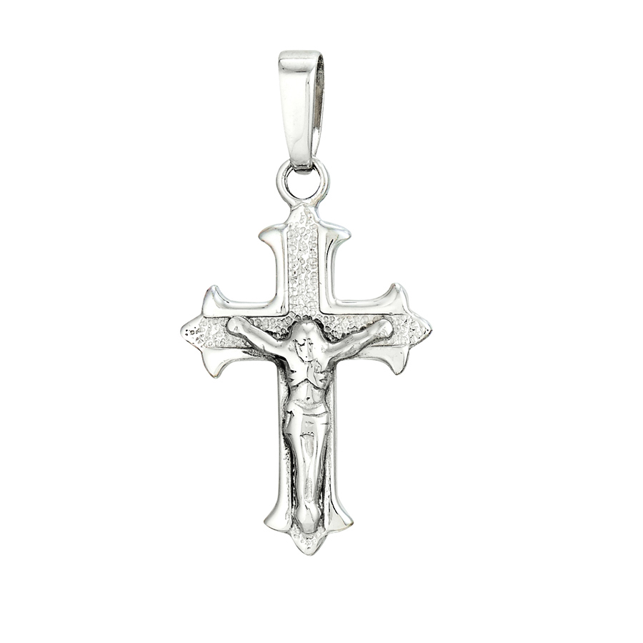 Sterling Silver Rhodium Plated Textured Fancy Edge Crucifix
